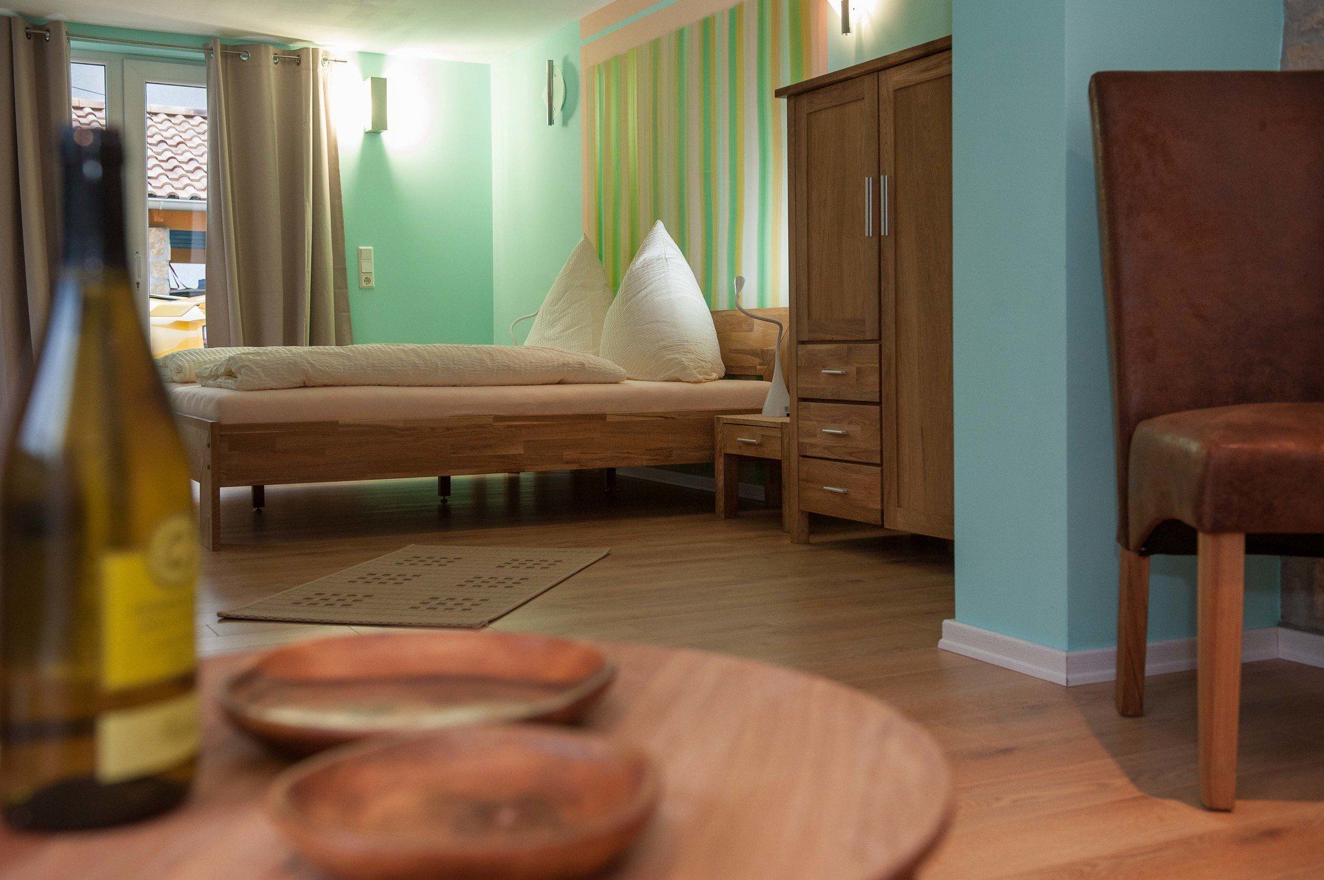 Lassen Sie sich von der Besonderheit unseres Hauses inspirieren, von dem individuell gestalteten Farbenspiel der Wände bis hin zu den Möbeln aus Naturhölzern und der stilgerechten Raumdekoration.